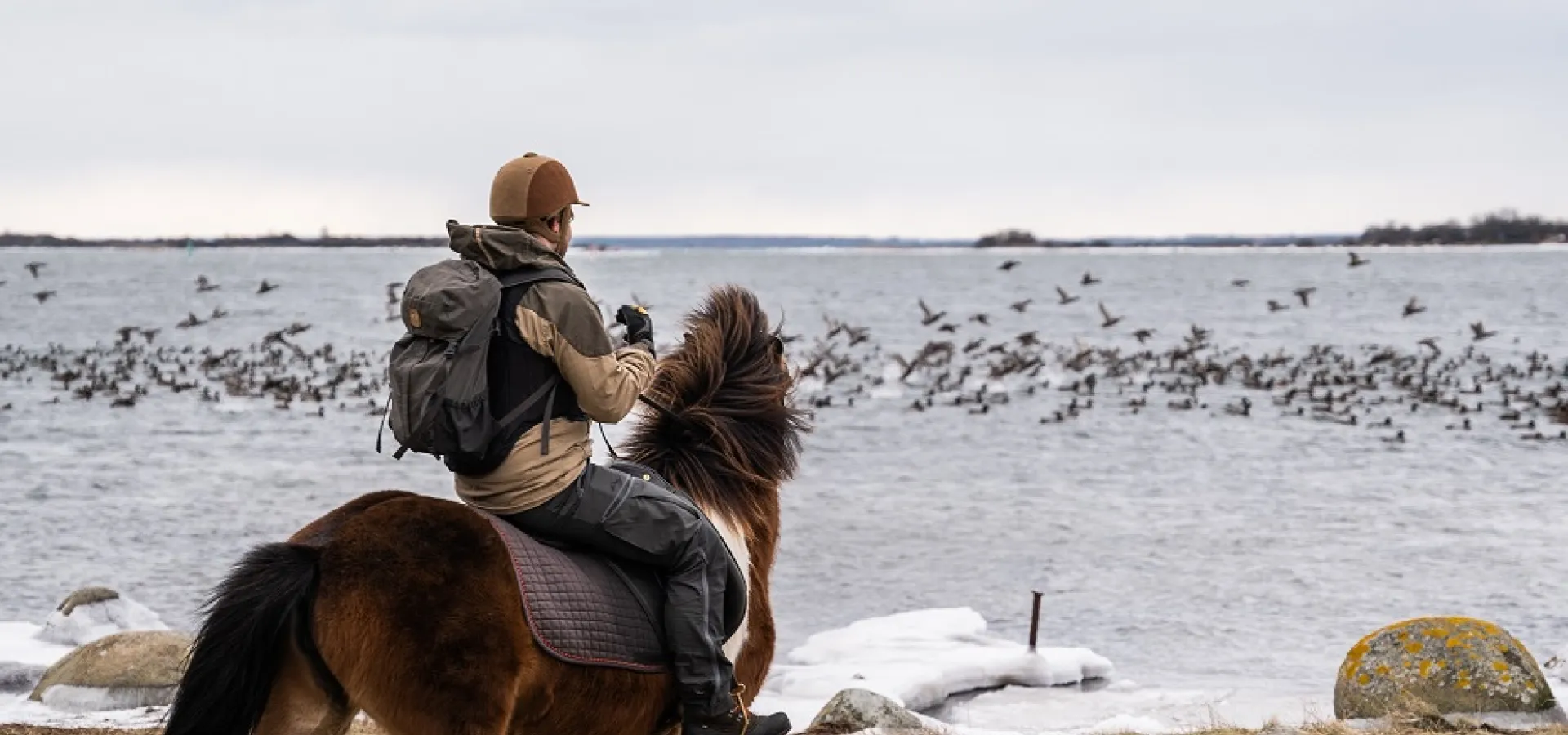 Today those dreams became a reality as we joined Camilla from Fornhaga Islandshästar on a ride through the swaying reeds along the seafront, under the branches of pine trees, over paths, gravel roads and fields as snowflakes fell from the sky and landed in the manes of our horses and us.