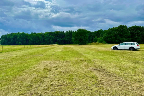 Naturskön ställplats med vackra vyer kring åkrar och ängar. Gångavstånd till Sandvikens badstrand.