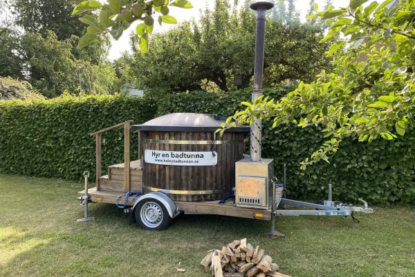 Hyr en badtunna på släp där full service i form av utkörning, städning och hemkörning ingår