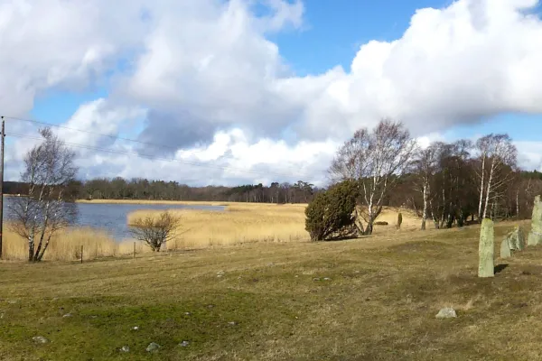 Hjortahammar på vägen mot Hasslö - på ett smalt näs som förbinder Almö med fastlandet reser sig mer än 120 gravmonument från främst yngre järnåldern.