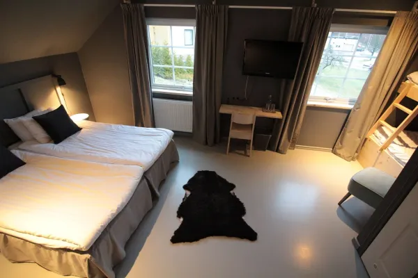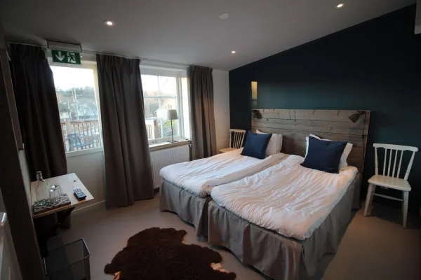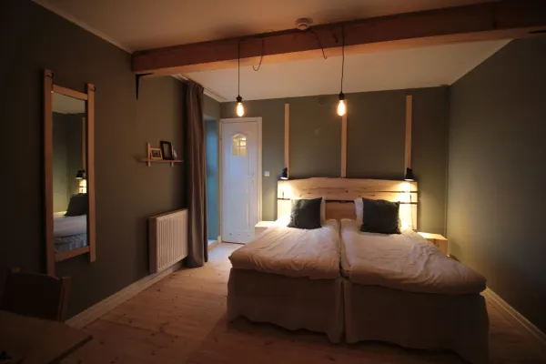 Hotellet har 12 rum alla med egen dusch/wc – nyrenoverade och inredda med omsorg. Alla går utan skor på hotellet, av flera anledningar. Dels så blir det enklare att hålla rent och fräscht, men det gör också hela tillvaron trevligare. Man känner sig som hemma och mer avslappnad. Är du frusen så finns det ulltofflor i en korg innanför dörren.