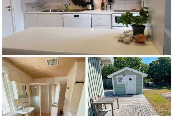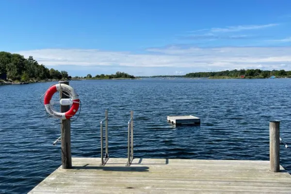 Hemmet har en stor gräsmatta, trädäck med utemöbler och grill där du kan njuta av dina måltider med utsikt över havet. Det finns en gemensam brygga med båt plats för din användning.Huset rymmer 5+2 personer. Det finns två rum med dubbelsängar och ett litet rum med en enkelsäng. Det finns även en separat friggebo med två enkelsängar. Täcken och kuddar ingår, men inte lakan och handdukar.