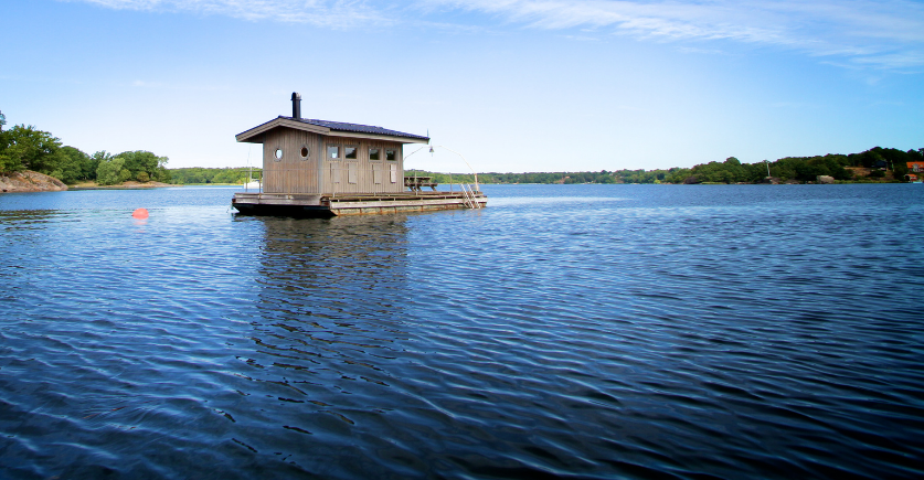 Skärgårdspärlan Tjärö har öppet mellan april-september, där kan du hyra deras vedeldade bastuflotte som du får ro ut till med en liten eka och njuta av det friska vattnet och varma bastun.