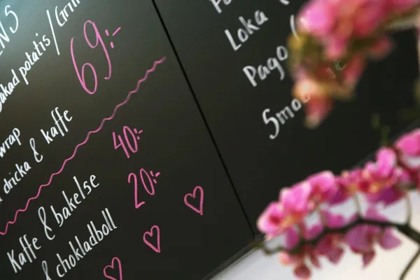 Här serveras mat, dryck och bakverk som lagats med kärlek.