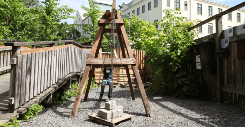 Kreapark på Kreativum – en grön oas i Karlshamn där barnen kan leka med såpbubblor, springa genom fontäner och upptäcka utomhusäventyr tillsammans.