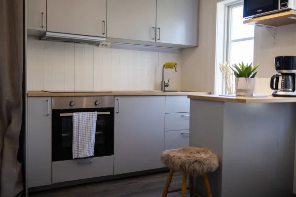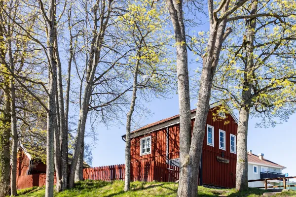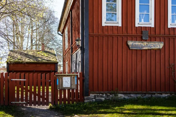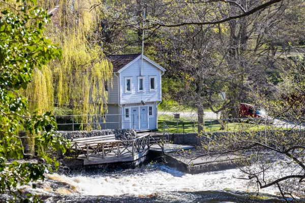 Här erbjuds ett vackert boende på övervåningen av byggnaden med fyra sängplatser, pentry för självhushållning samt dusch och toalett. Byggnaden ligger med ett högt läge på vägen ner till Laxens Hus, och med bedårande utsikt över Kungsforsen.