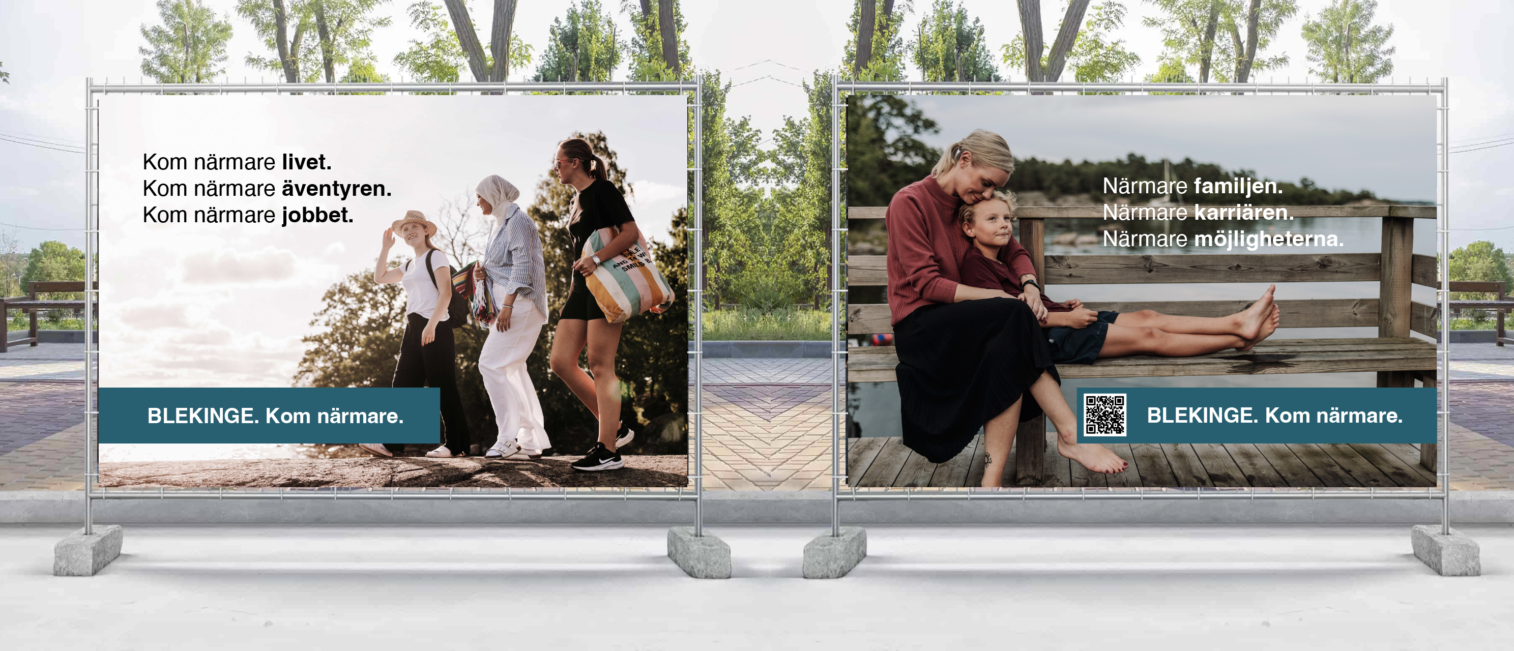 Här ser du ett exempel på hur våra stadsvepor kan presenteras i miljö. Bilden visas i större format för att ge en tydligare uppfattning om utformning, färg och budskap.