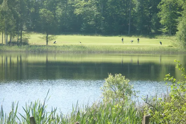 De första 9 hålen spelar du till största delen i skogen och de sista 9 hålen i mer öppen terräng.Utslaget på hål 1 involverar vatten vilket kan göra det första utslaget lite mer utmanande. På hål 3 kan både vinden och det skyddande vattenhindret kräva extra genomtänkta slag.