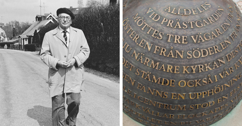 - Monumentet ”Vägskäl” står precis där tre vägar möts i Jämshög – en symbol från hans barndomsminnen.