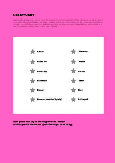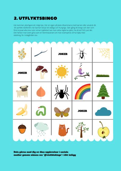 Ta med utflyktsbingo eller skattjakt – två kostnadsfria aktivitetsblad som gör vandringen till ett spännande äventyr. Barnen får upptäcka naturen med nya ögon.