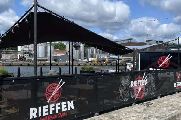 Njut av god mat, dryck och glass längs Sommargatan på östra kajen.