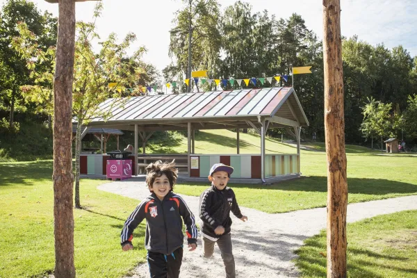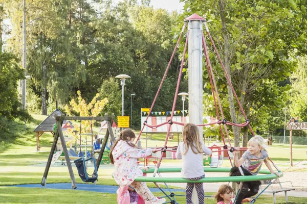 - På lekplatsen finns paviljong, bord och bänkar för medhavd fika.